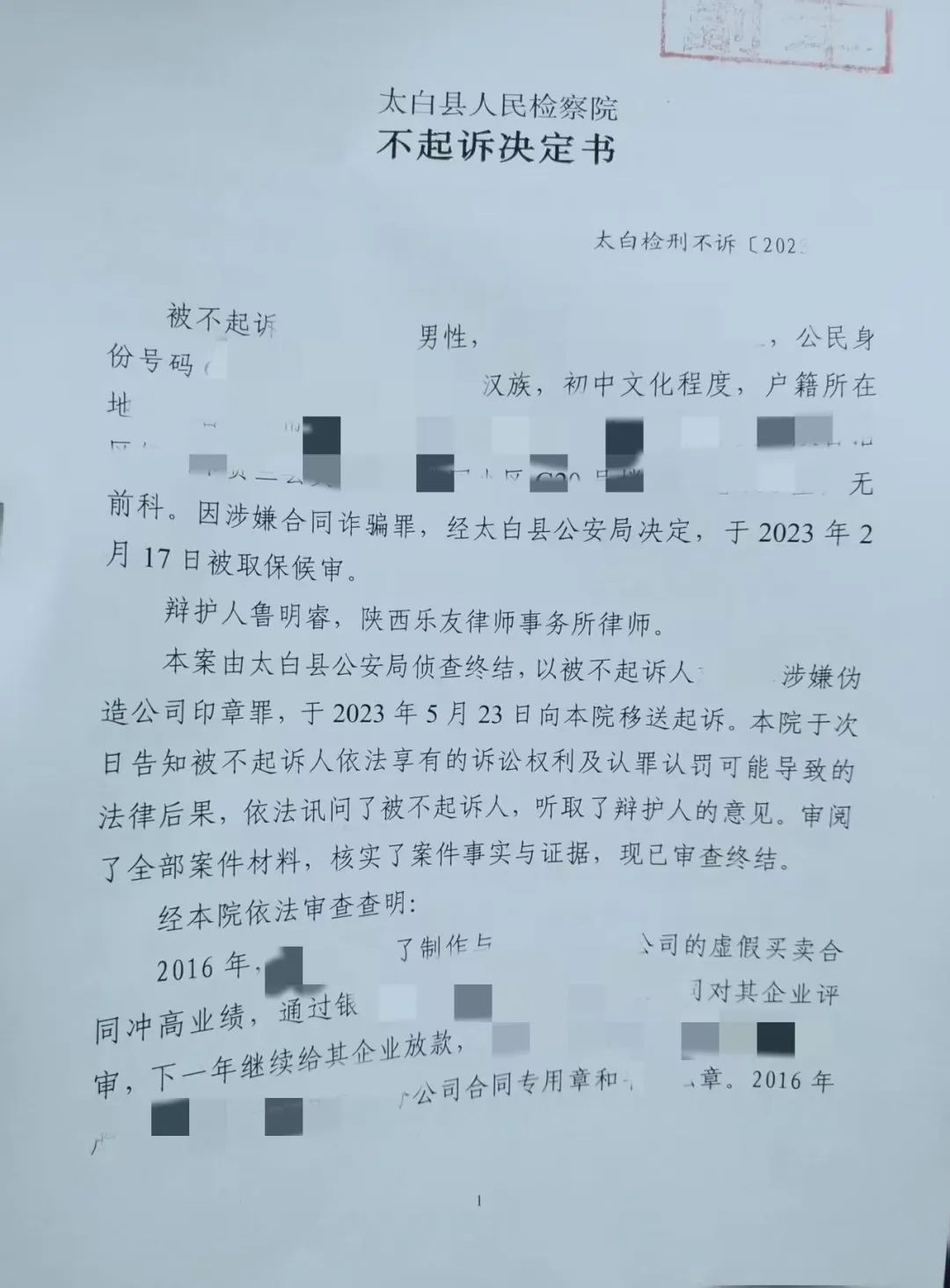 2023年,当事人因涉嫌伪造公司印章罪被太白县公安局调查。2016年,林某为冲高业绩,指使当事人伪造某天然气公司合同专用章和韦某私章,当事人在咸阳市一打字复印店花35元刻制。而后林某用假印章伪造买卖合同诈骗。2023年2月林某归案后,当事人出于害怕,便对印章进行销毁。经鉴定,假印章和真印章印文不同,案发后当事人被取保候审。