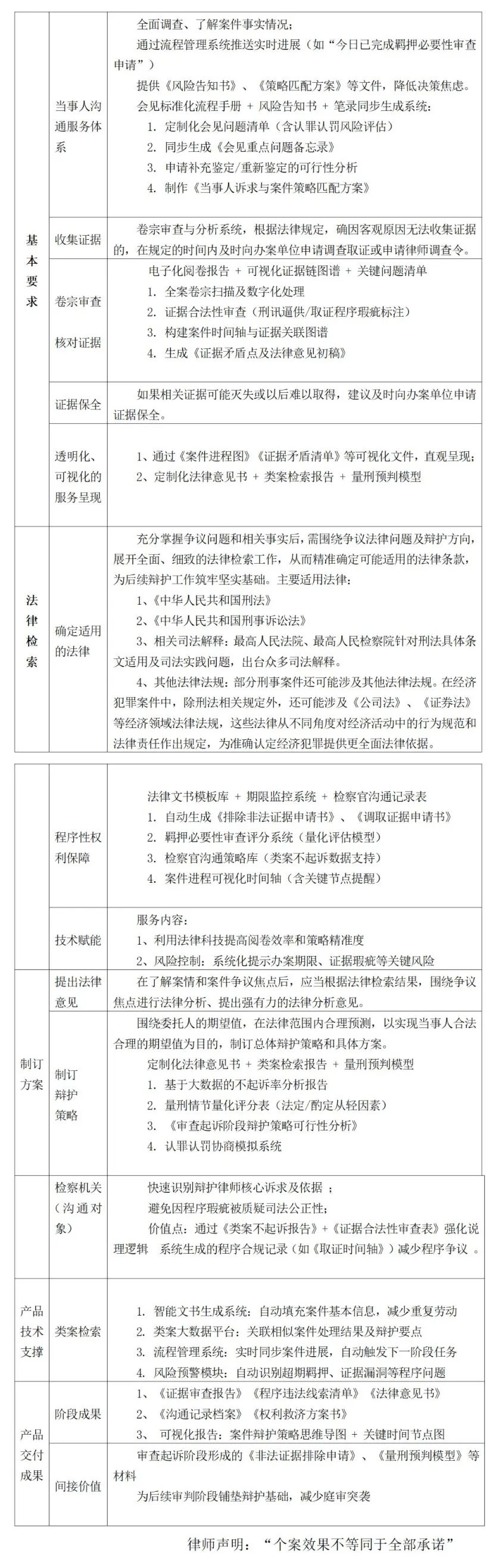 产品特点及目标:事后救济,通过标准化流程+定制化策略,实现有效辩护、权利保障和程序监督。